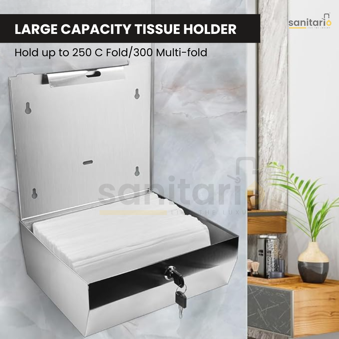 Capacity: Holds up to 250 C-Fold or 300 Multi-Fold paper towels.