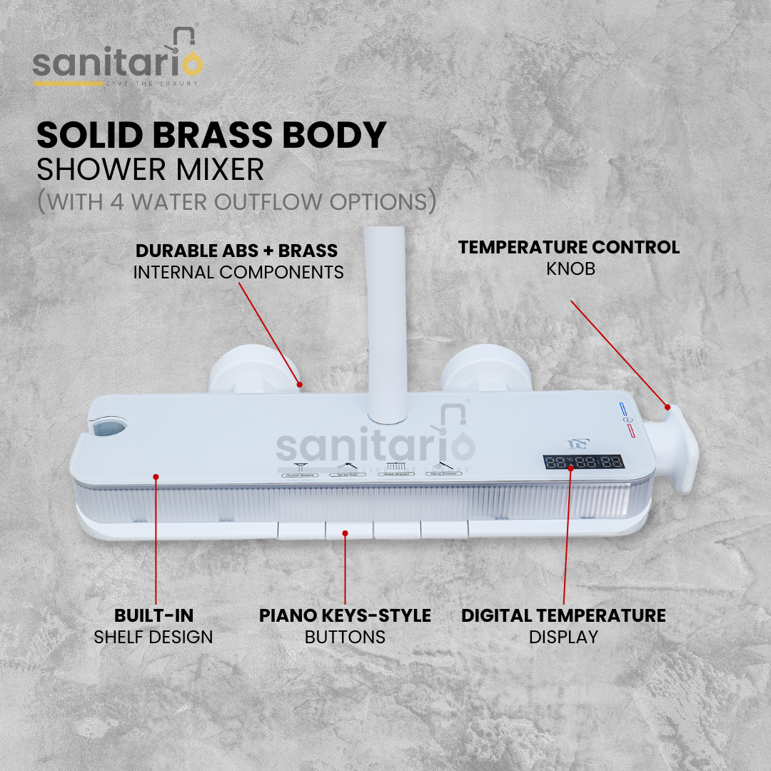 Transform your everyday shower into a luxurious ritual with the Crystal Piano, Sanitario’s elegant and intelligent piano-style shower system. Featuring a smart LED temperature display, calming LED-lit rainfall shower, and a refreshing nebulizer spray bar, this complete set offers a spa-like experience with modern design and reliable performance.