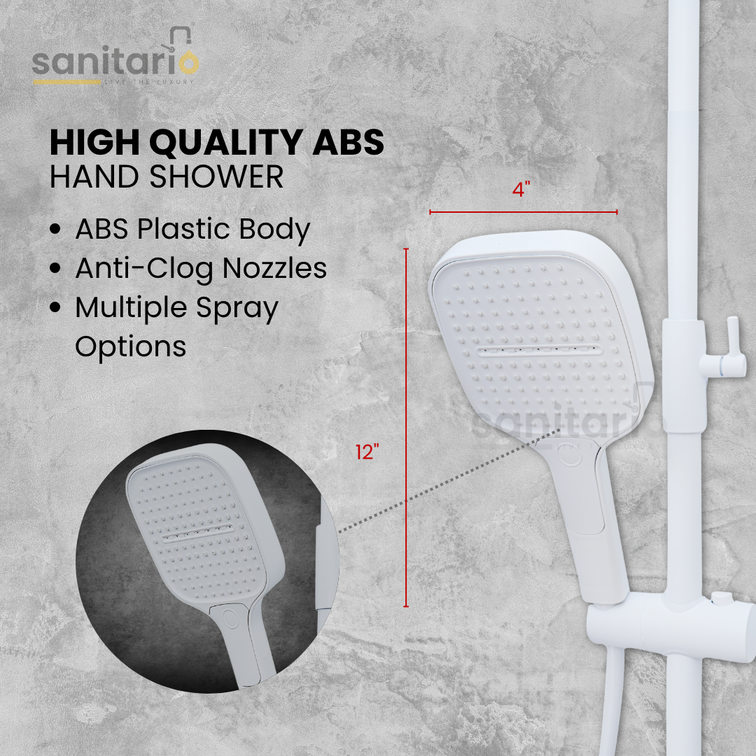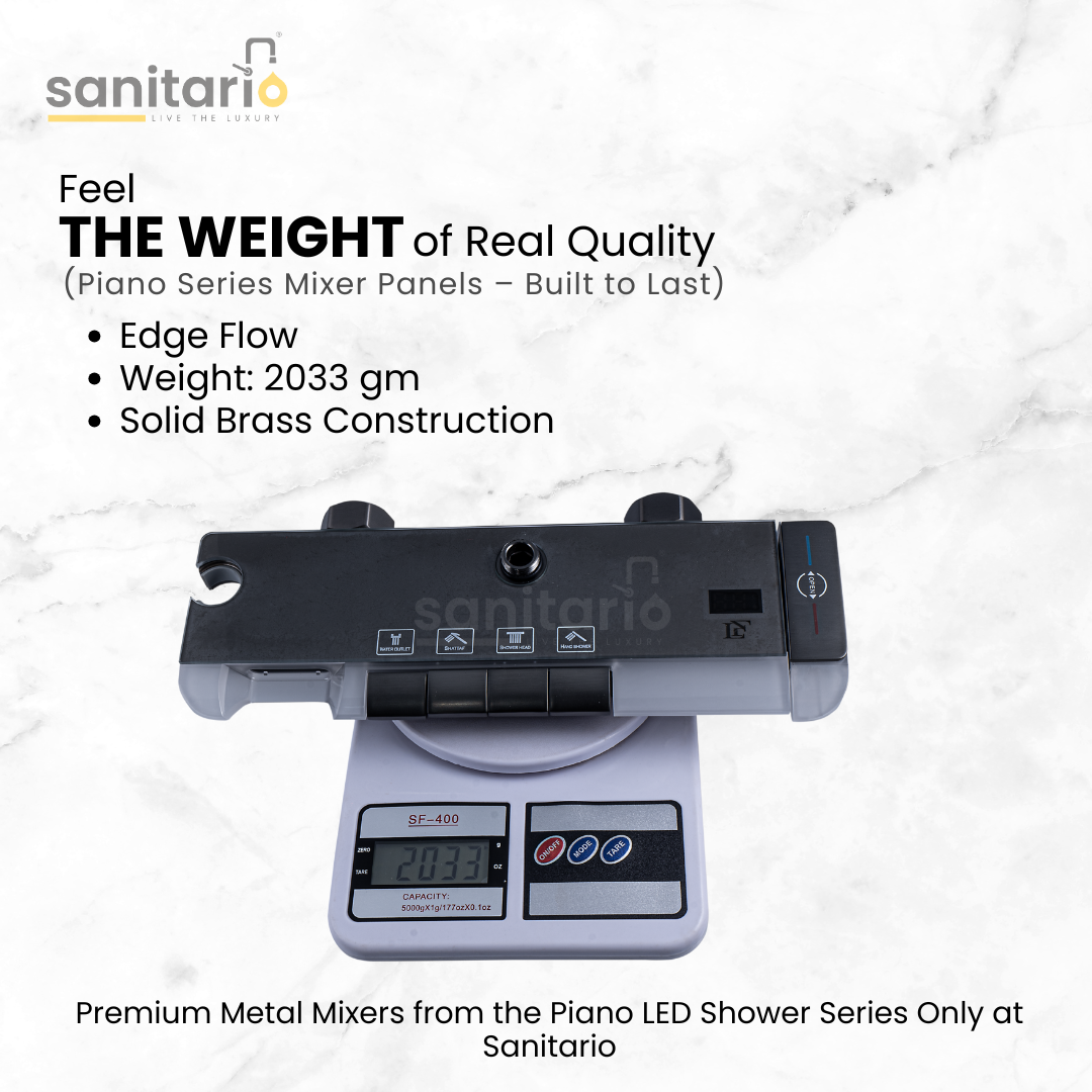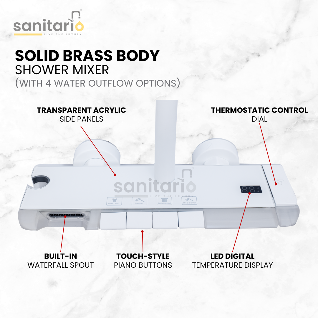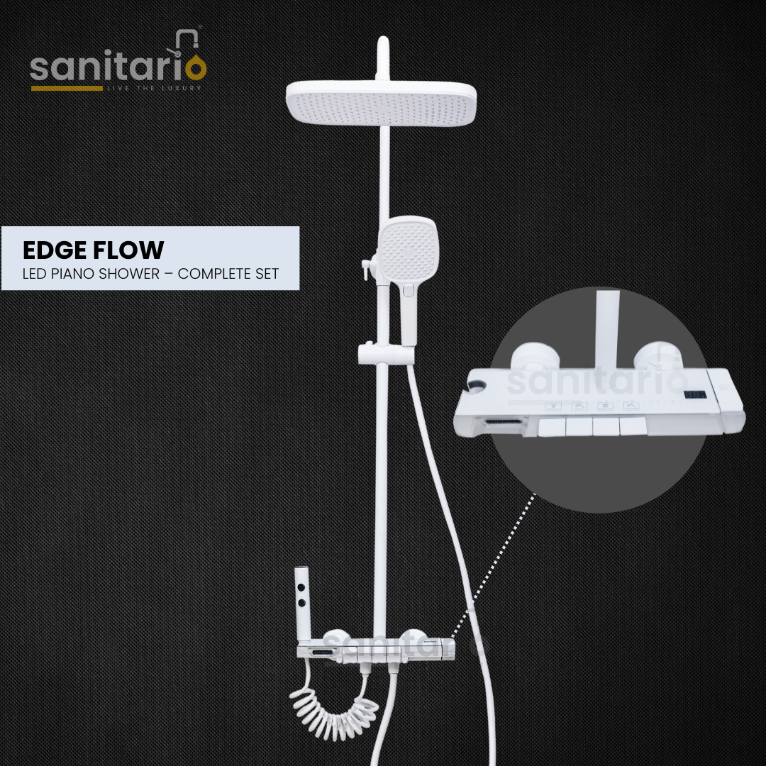 Clean, minimal, and engineered with modern precision — the Edge Flow is Sanitario’s all-white LED Piano Shower system built for those who love refined design and practical performance. With its soft matte finish and intelligent water control, this complete set offers a seamless blend of style and everyday utility.
