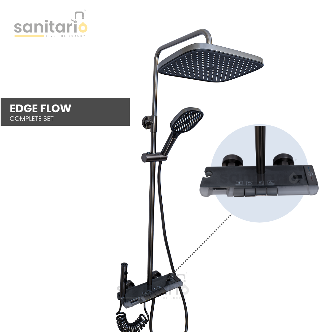 The Edge Flow transforms your shower routine with elegant functionality and minimalist design — a premium statement of luxury and comfort, only at Sanitario.