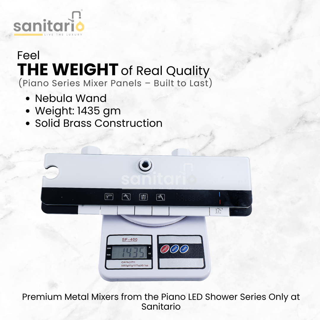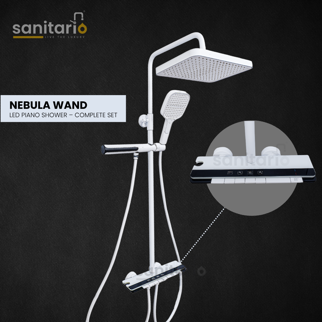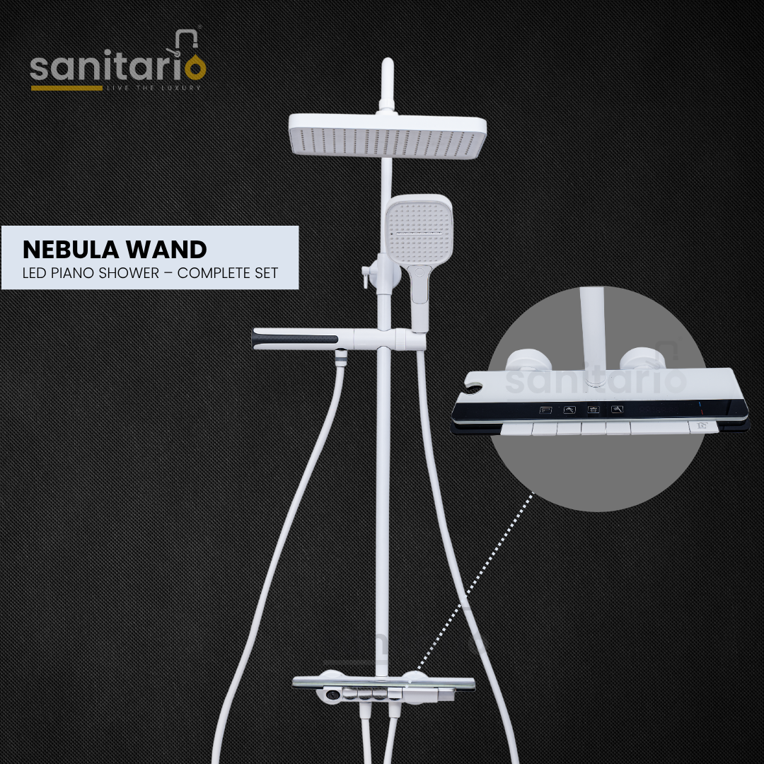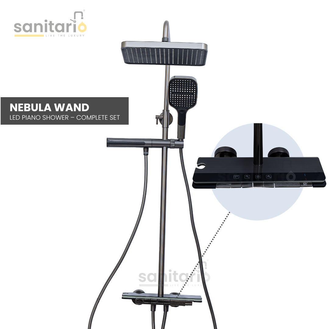 Experience spa-like relaxation in your own bathroom with the Nebula Wand, Sanitario’s advanced LED Piano Shower System designed for comfort, luxury, and everyday practicality. With a sleek horizontal Spa Wand offering dual water flows, this complete set brings style, innovation, and indulgence together in one modern system.