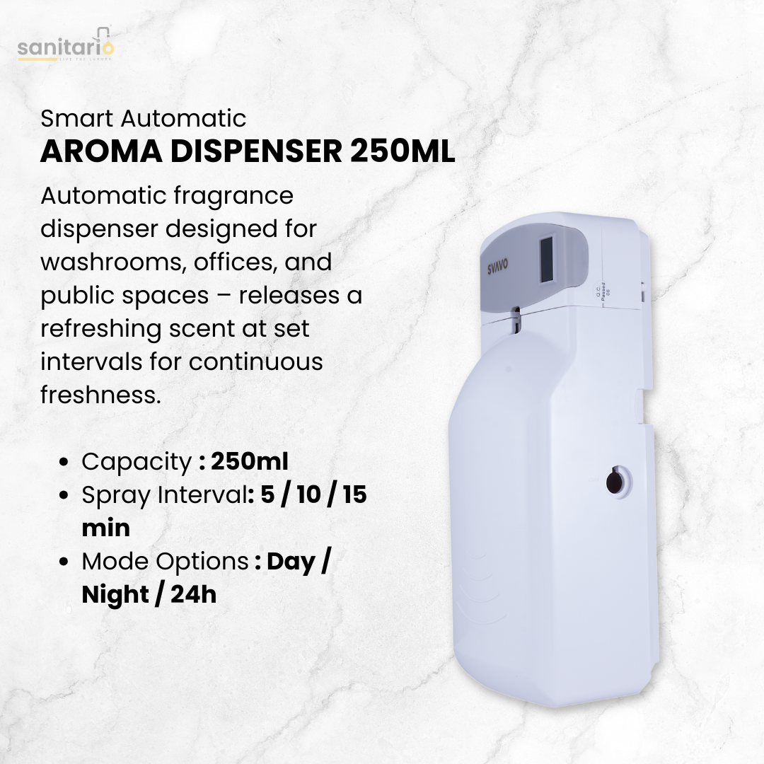 Automatic Fragrance Release: Dispenses scent automatically at preset intervals for continuous freshness.
