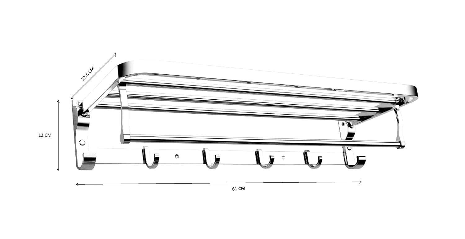 | Design | Double Layer with Shelf + Multiple Hooks |