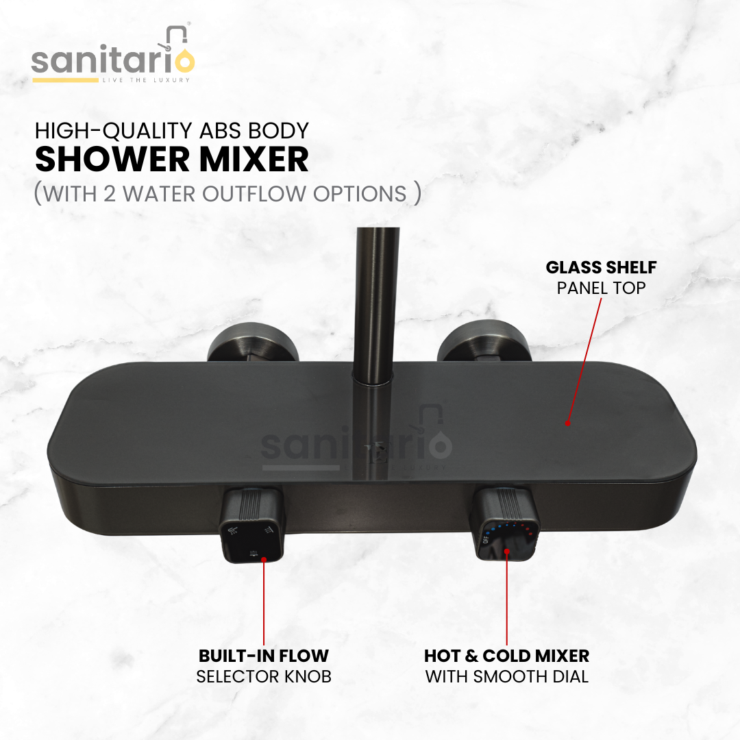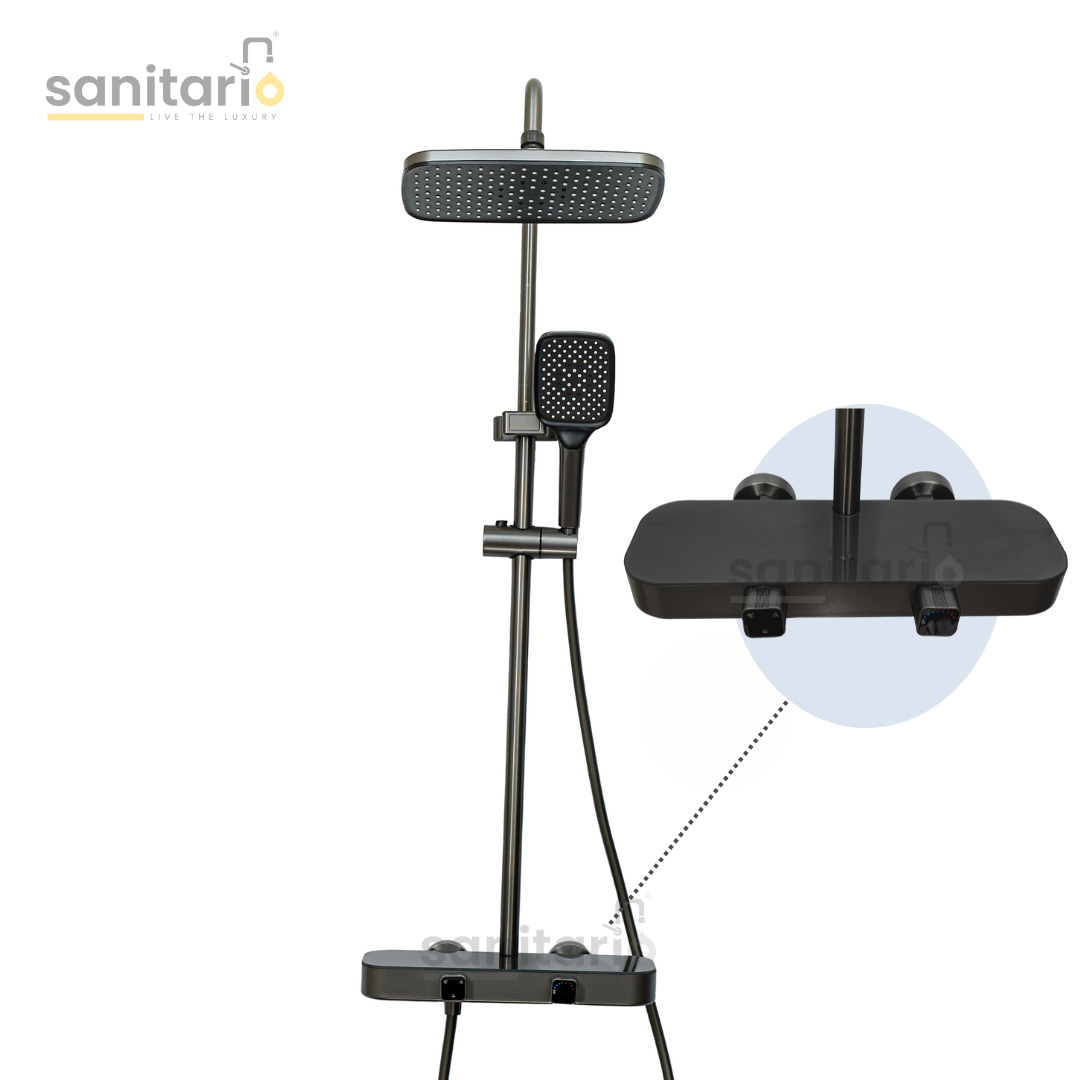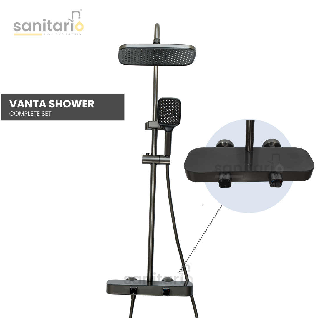 Designed for elegance and practicality, the Vanta brings a clean, bold aesthetic to your bathroom with Sanitario’s signature piano-style control system. With essential features like rainfall shower, jet spray, and built-in basin tap, it’s a modern shower system made for everyday performance.
